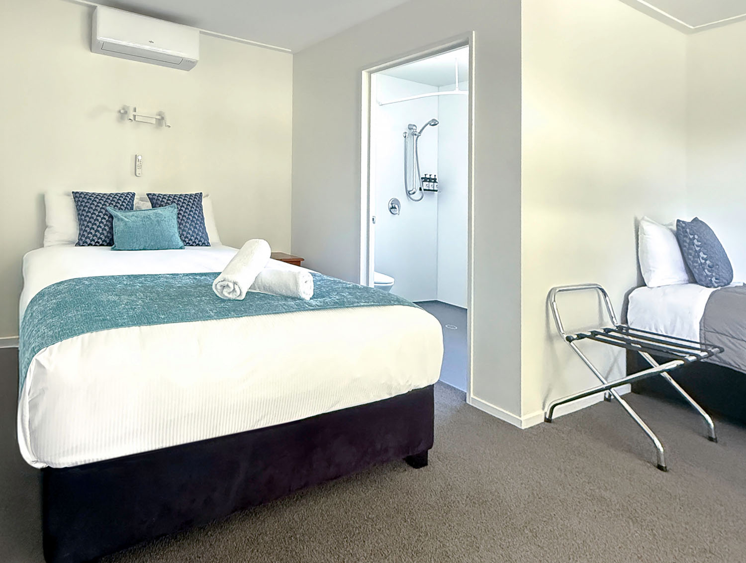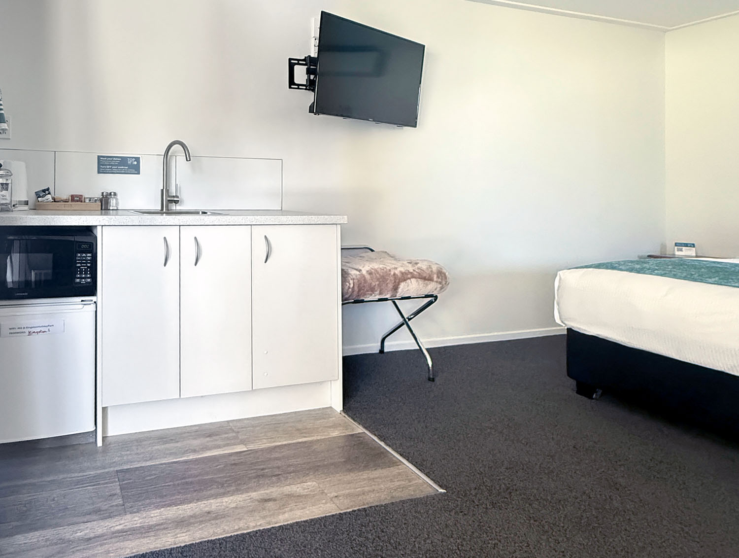 Studio Room: 1 x Queen bed, 1 x Single bedThis comfortable, fully self-contained studio is ideal for couples, small families, or guests needing wheelchair access. It offers a practical and relaxing space with everything you need for a comfortable stay.